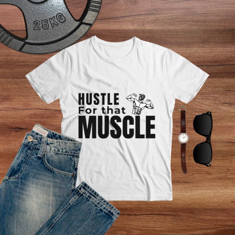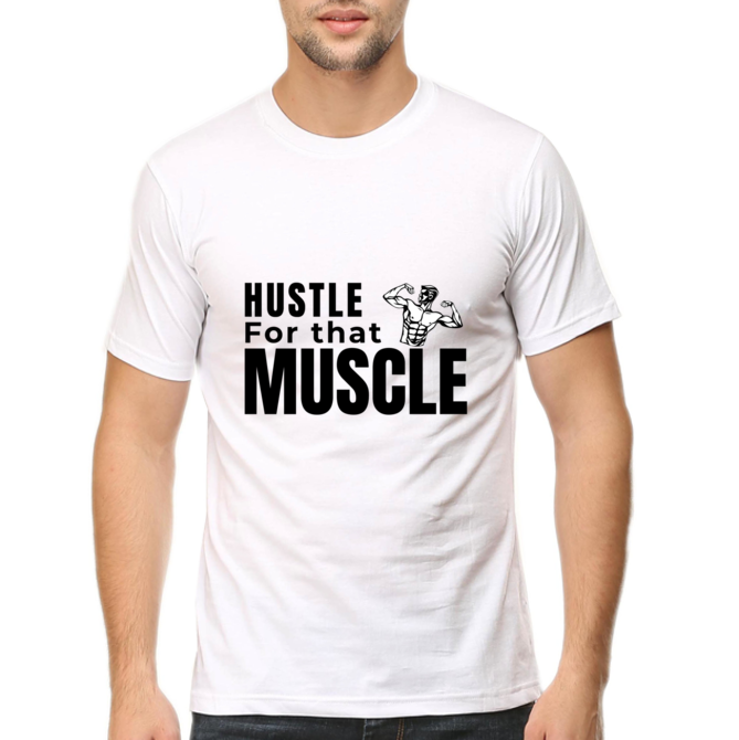 Hustle for muscle v1 White Gym TshirtHustle for muscle v1 White Gym Tshirt